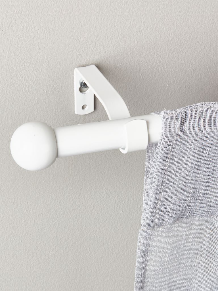 Gardinstången Malaga slät och skön vitlack med elegant design och justerbar längd . Satte upp den med grå gardiner upphängda, super fin