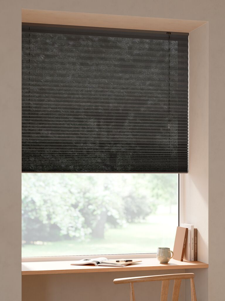 Plisségardinet er fin til prisen, men så er det heller ikke mere værd. Mere brunt end sort når solen skinner og kører lidt sløj.