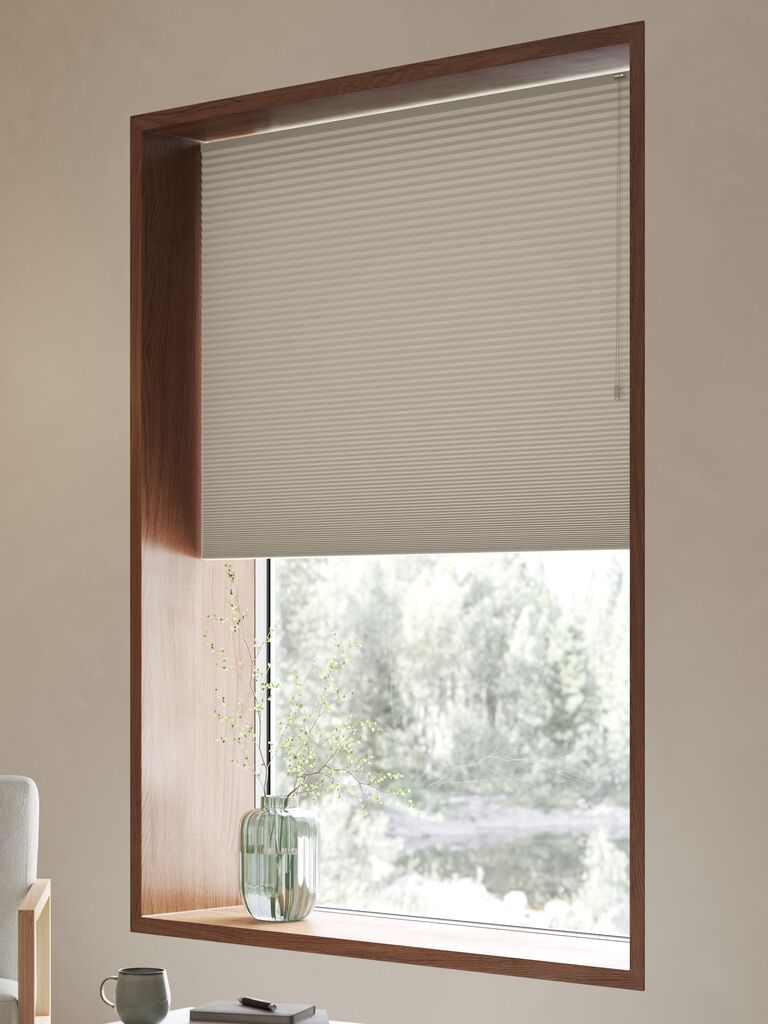 | Behandling | Træk regelmæssigt plisségardinet helt op for at sikre, at plisseringen forbliver pæn. |