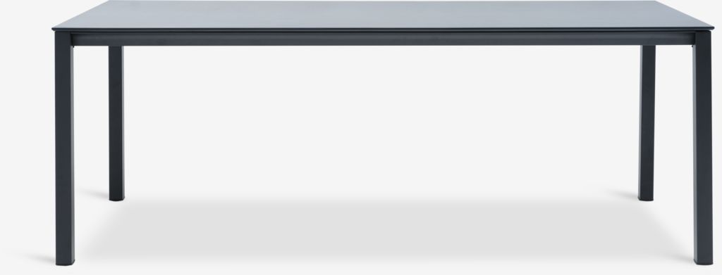 4-personers havemøbelsæt. Bord: Aluminium og DURAWOOD® komposittræ. DURAWOOD® er et slidstærkt sammensat materiale, bestående af FSC®-hårdttræsfibre og plast. B95 x L207 x H75 cm. Stol: Stål og polyester. Stabelbar.