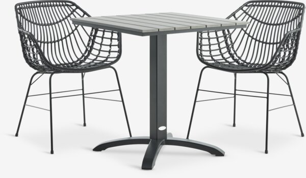 HOBRO + ILDERHUSEHOBRO L70 bord grå + 2 ILDERHUSE stol sort