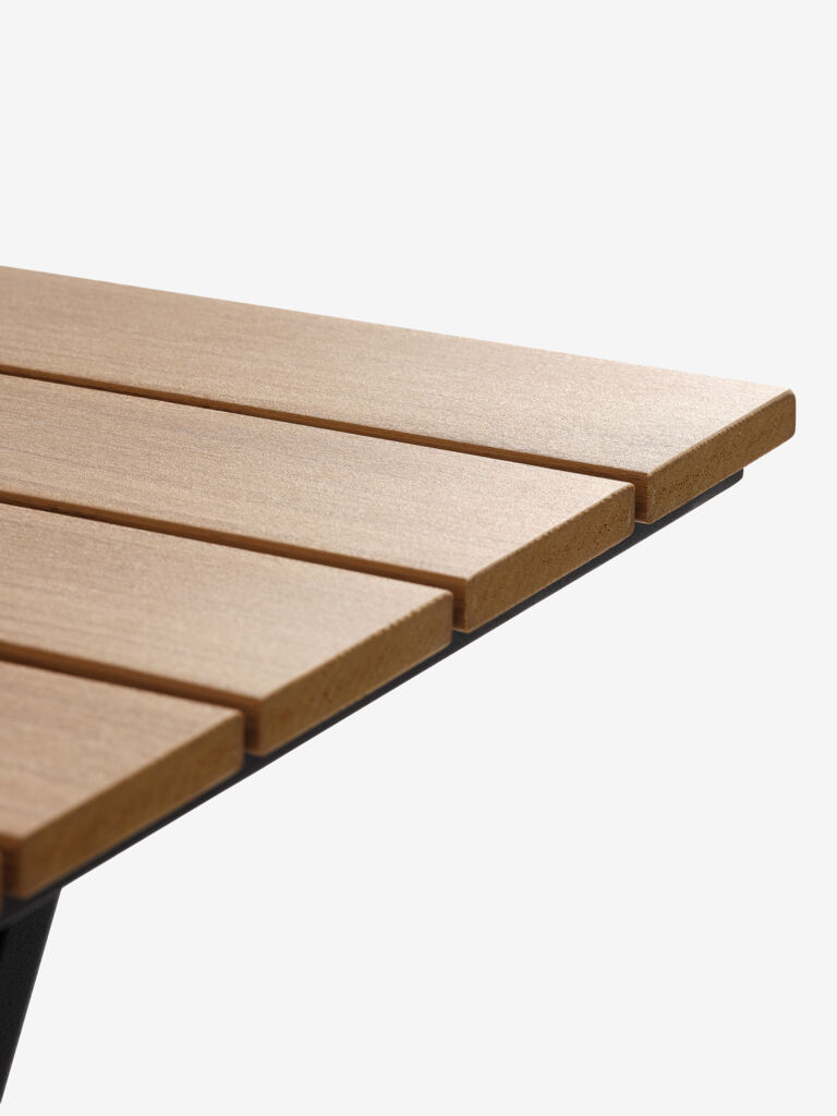 | Materiale | Stel: Stål, Plade: Kunsttræ er et vedligeholdelsesfrit, syntetisk materiale med en naturlig træstruktur. Det er fremstillet af plast som polystyren, hvilket udgør et slidstærkt og vejrbestandigt materiale. Kunsttræ er UV-beskyttet, hvilket sikrer en farvebestandig overflade. |