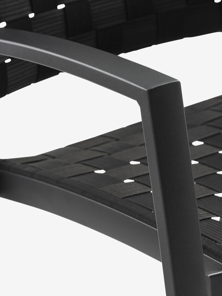 2-personers cafésæt. Bord: Stål og sintret sten. Bordpladen af sintret sten er modstandsdygtig over for ridser, pletter og varme. Ø70 x H72 cm. Stol: Aluminium og polypropylen. Stabelbar.