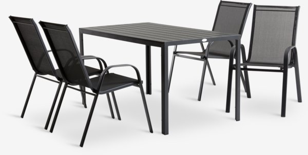 JERSORE + LEKNESJERSORE L140 bord sort + 4 LEKNES stole sort