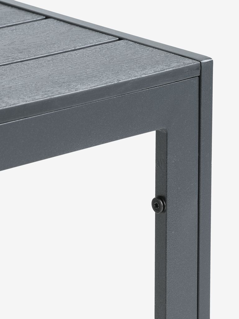 | Materiale | Stel: Aluminium er et let og elegant materiale, som ikke ruster. Det kræver ingen vedligehold og rengøres nemt med en fugtig klud. Kunsttræ er et vedligeholdelsesfrit, syntetisk materiale med en naturlig træstruktur. Det er fremstillet af plast som polystyren, hvilket udgør et slidstærkt og vejrbestandigt materiale. Kunsttræ er UV-beskyttet, hvilket sikrer en farvebestandig overflade. Aluminium er et let og elegant materiale, som ikke ruster. Det kræver ingen vedligehold og rengøres nemt med en fugtig klud. |