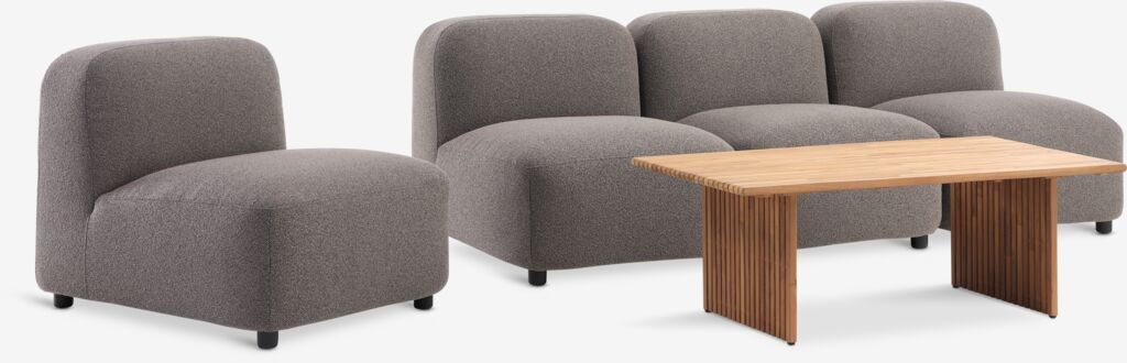 - 4-personers loungesæt: 4 siddemoduler og 1 loungebord
