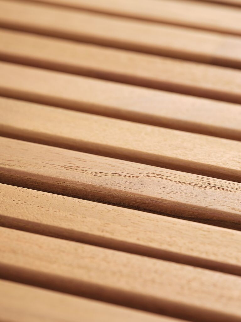 Massivt FSC®-teak er et naturmateriale med et højt indhold af naturlige olier, som hjælper med at forhindre fugt i at trænge ind i træet. Over tid udvikler teak naturligt en sølvgrå patina. Regelmæssig oliering anbefales for at bevare udseende og holdbarhed.
