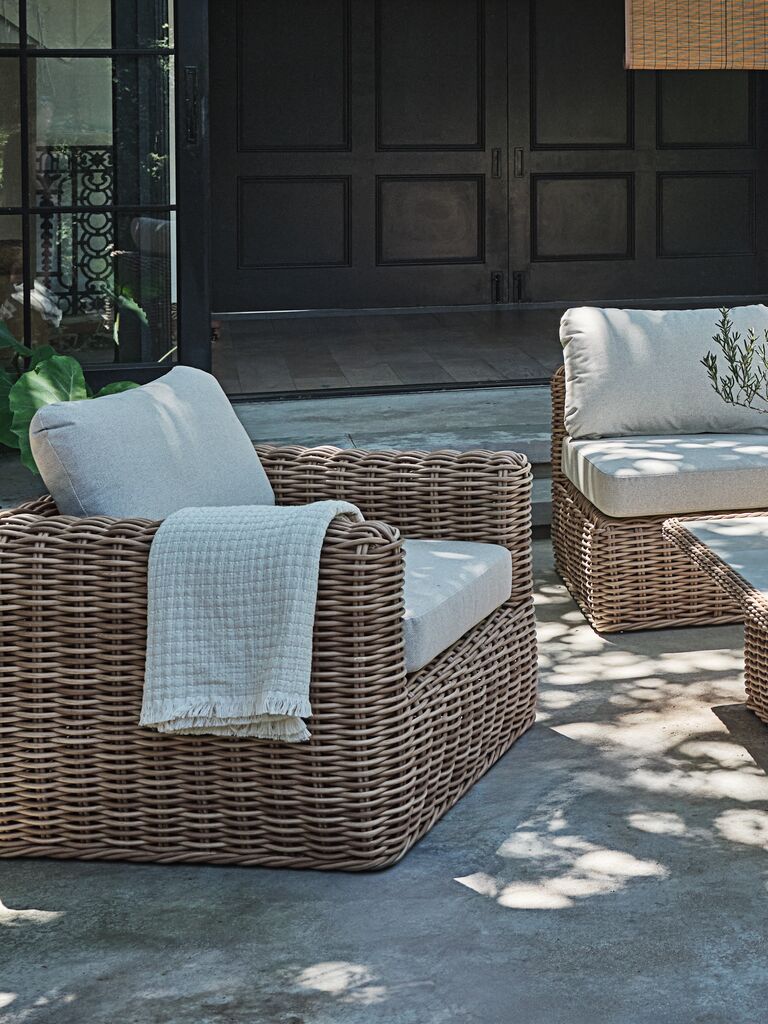 Slap af udendørs i EJER loungestol. Med hynder med hurtigtørrende betræk, vejrbestandig polyrattan og et rustbestandigt aluminiumsstel kombinerer denne havestol komfort og holdbarhed. B103 x H67 x D94 cm