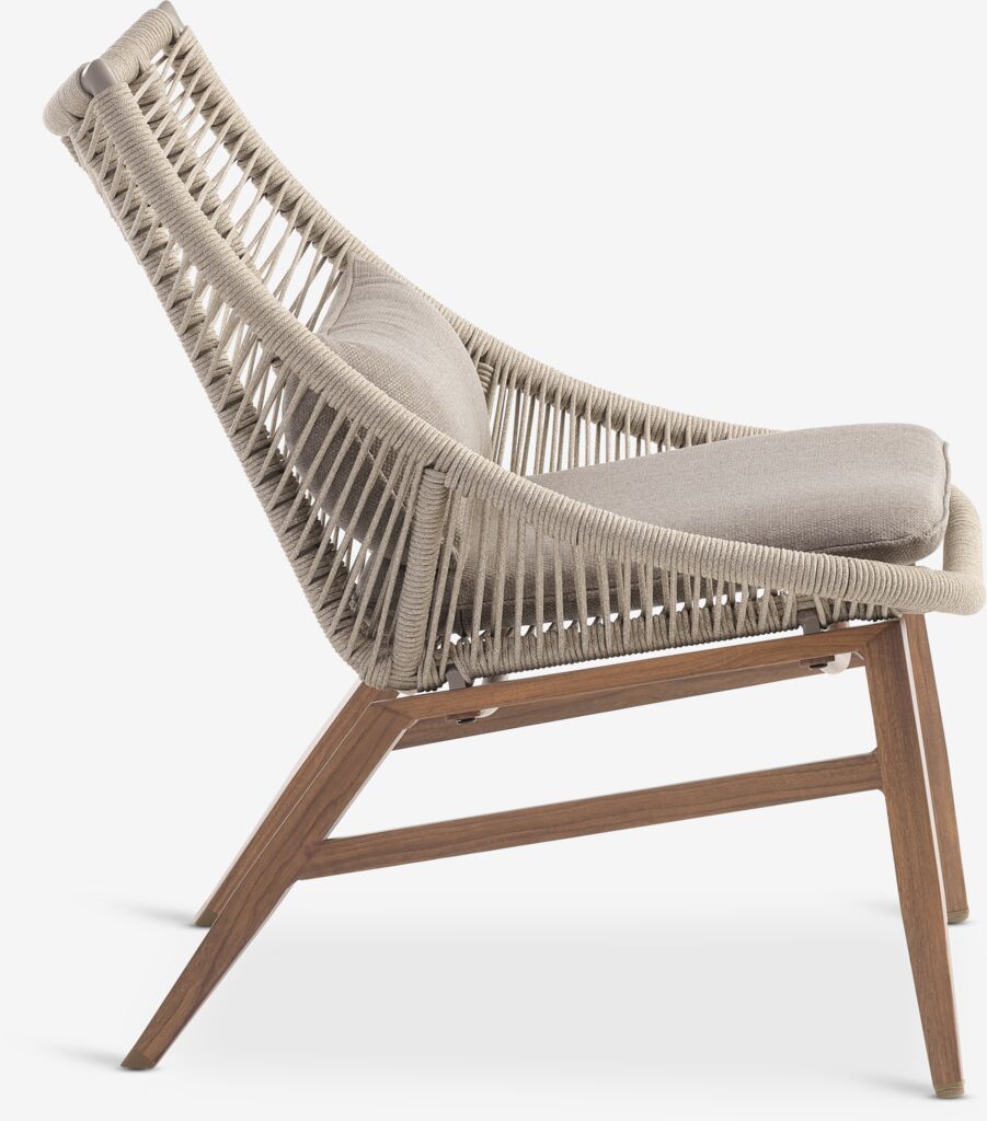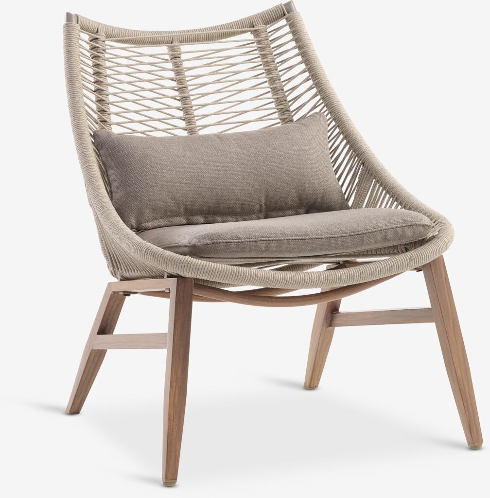 Loungestol i aluminium og polyesterreb. Inkl. luksushynder med slidstærkt, strukturvævet betræk. B70 x H85 x D80 cm
