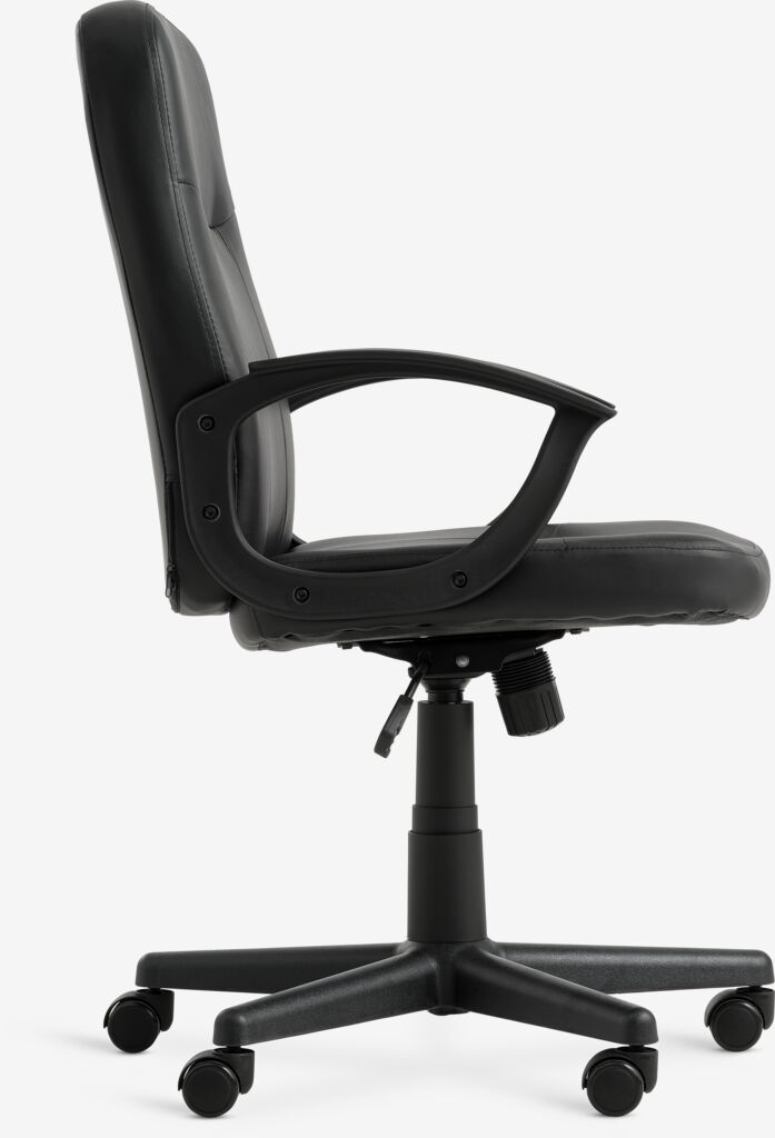 NIMTOFTE kontorstol giver dig god støtte, så du bedre kan fokusere. En kontorstol er en justerbar, støttende stol, der hjælper dig med at holde dig komfortabel gennem lange arbejdsdage. Med armlæn understøtter denne stol en god kropsholdning, så du kan sidde komfortabelt i timevis. Stolen er betrukket med sort kunstlæder. B57 x H92-102 x D64 cm