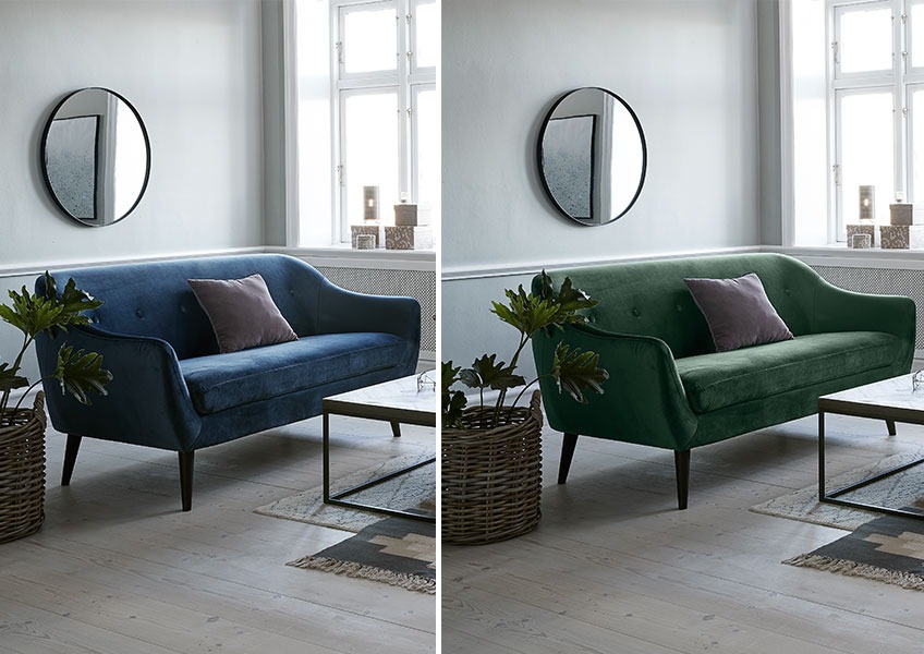 EGEDAL blå og grøn velour sofaer: “smukt velourstof”