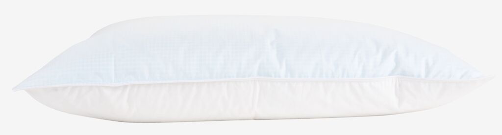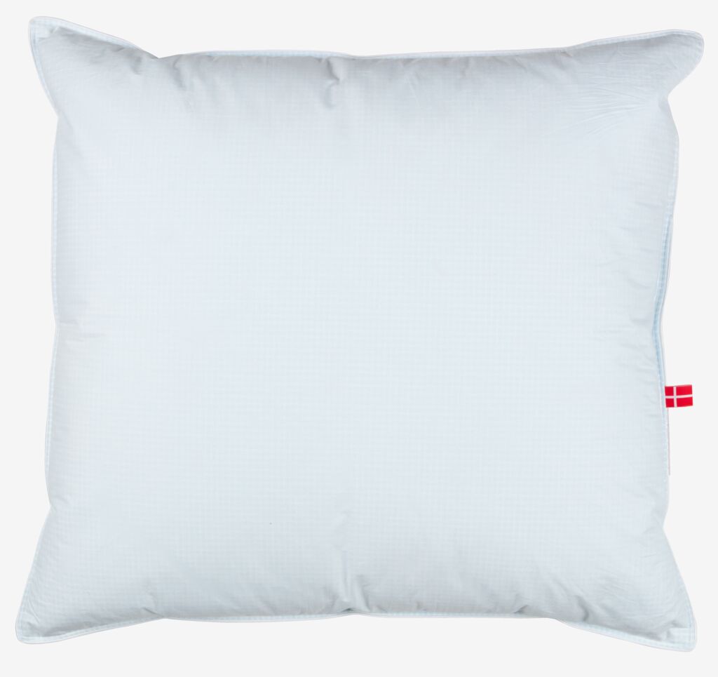 Allergivenlig moskusdunpude 60x63/70 cm med 3 kamre. Fyld af 60% hvide, europæiske moskusdun/40% moskusfjer i yderkamrene og 85% hvide, europæiske andefjer/15% hvide europæiske andedun i inderkammeret, 750 g. Moskusdun minder om de eksklusive edderdun og giver en blød og behagelig støtte. Blødt bolster i 100% bomuldscambric. Det tætvævede bolster begrænser støvmider i at trænge igennem. Den ene side af bolsteret indeholder kølende og temperaturregulerende mikrokapsler, hvilket giver dig muligheden for at skifte mellem en almindelig og en køligere side. Bæreevne 625/400. Vask 60°C.