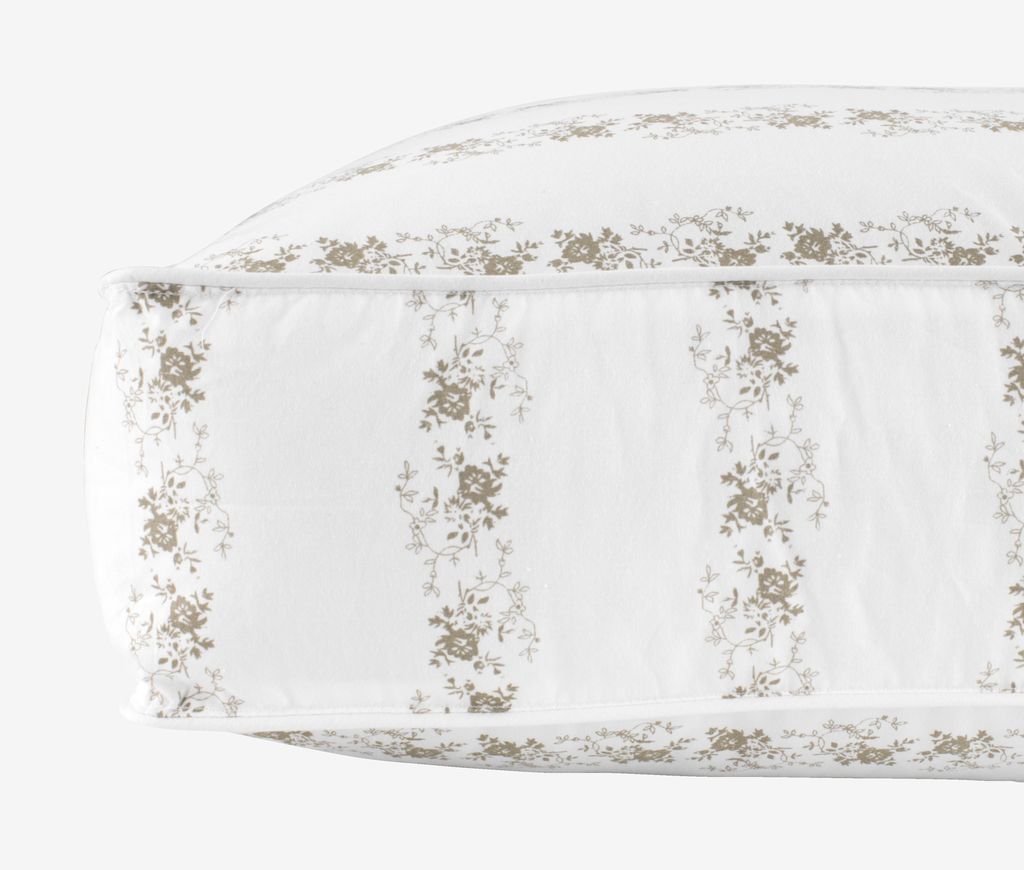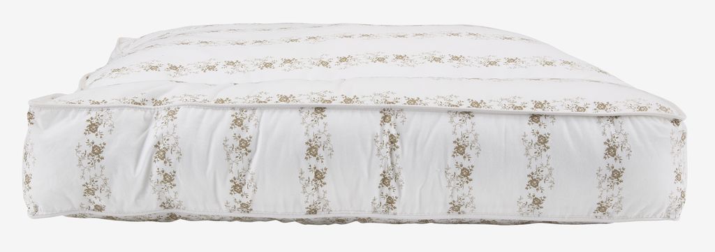 | Kant | Farve: Beige, Mønstret, Hvid, Materiale: Bomuldscambric er vævet af en tynd tråd, hvilket giver et tættere, lettere og mere smidigt bolster. Tætheden gør, at fyldet ikke kan arbejde sig ud gennem bolsteret, og at bolsteret er meget slidstærkt. |