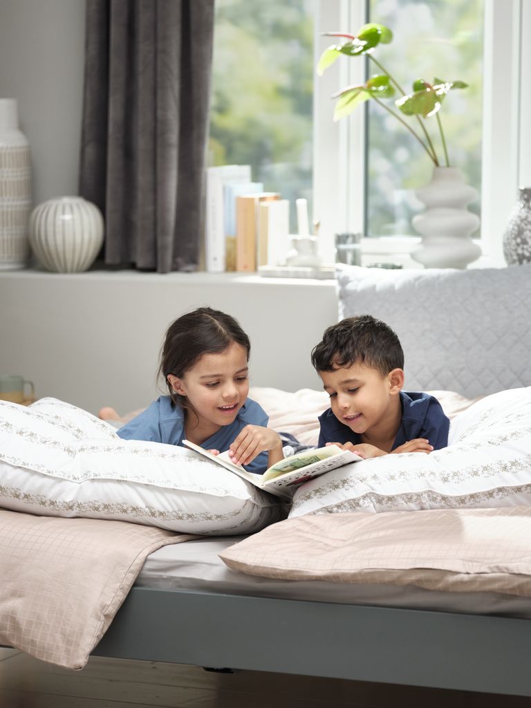 | Vedligehold | Vaskes og tørres i maskiner, der kan tage mindst 7 kg. Bør rystes og luftes regelmæssigt, må ikke bankes eller støvsuges |