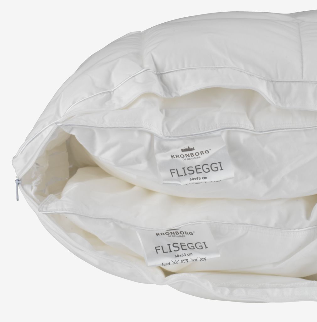 Praktisk 3-i-1 fiberpude 60x63/70 cm, der kombinerer et tykt quiltet bolster med 2 inderpuder, som kan bruges sammen eller hver for sig. Betræk med silikoniseret polyesterfiberfyld, 270 g, og inderpuder med kuglefiberfyld, 425/600 g. Pudens højde og fasthed kan justeres ved at fjerne den ene eller begge puder. Blødt bolster i 100% bomuldscambric. Vask 60°C. Inkl. opbevaringstaske.
