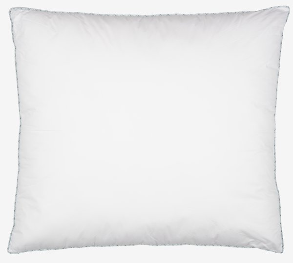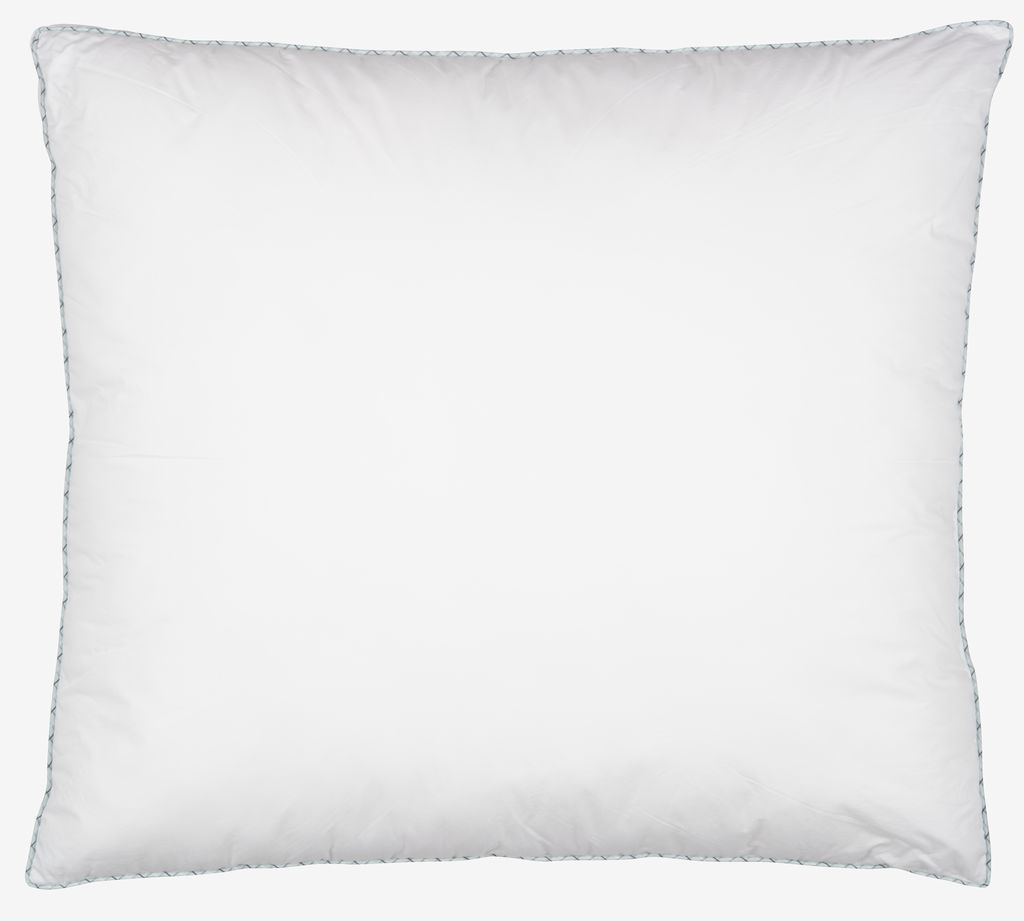 Fiberpude 60x63/70 cm med boxkant, som lader puden holde sin facon og give jævn støtte. Unikt, dunlignende fyld af silikoniserede Trevira Fibelle fiberdun, 650 g. De bløde, lette fiberdun bevarer deres volumen og er nemme at ryste på plads. Blødt bolster i 100% bomuldscambric. Vask 60°C.