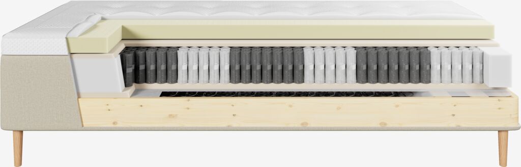 | Fjedertype | Multipocket-fjedre giver mange støttepunkter, hvilket giver en mere præcis tilpasning til kroppen.