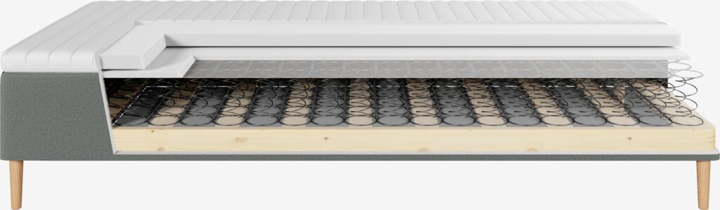 | Springlag 1 (øverst) | 14,5 cm Bonellfjedrer giver en fast og relativt stabil madras. |