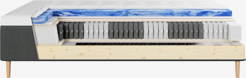 | Komfortzoner | Komfortzoner er designet til at give særlig støtte til forskellige dele af din krop, såsom hoved, skuldre, lænderegion, hofter og ben. Zonerne varierer i fasthed for at give for eksempel ekstra lændestøtte eller en dybere skulderzone. Ved at skabe målrettet støtte i specifikke områder hjælper komfortzoner med at forbedre den generelle komfort, fremme en sund sovestilling og reducere trykpunkter. |