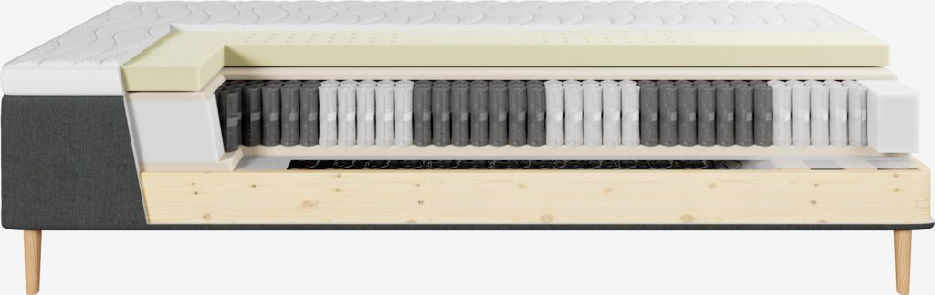 | Komfortzoner | Komfortzoner er designet til at give særlig støtte til forskellige dele af din krop, såsom hoved, skuldre, lænderegion, hofter og ben. Zonerne varierer i fasthed for at give for eksempel ekstra lændestøtte eller en dybere skulderzone. Ved at skabe målrettet støtte i specifikke områder hjælper komfortzoner med at forbedre den generelle komfort, fremme en sund sovestilling og reducere trykpunkter. |