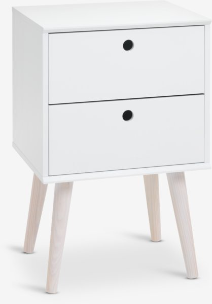 OPLEVSengebord OPLEV 2 skuffer hvid/fyr