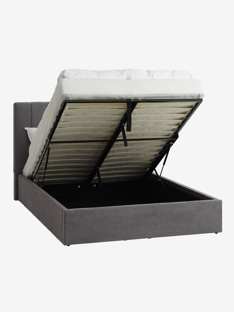 Heel mooi bedframe. Erg zachte stof en de opbergruimte onderin in ideaal. Het open en dicht doen van de lattenbodem gaat erg gemakkelijk. Heel blij met het bed.