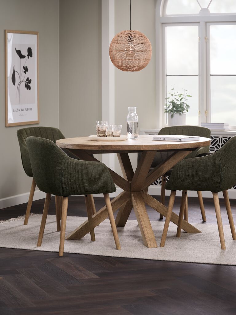 GRIBSKOV + ADSLEVGRIBSKOV Ø120 bord natur eg + 4 ADSLEV stole olivengrøn