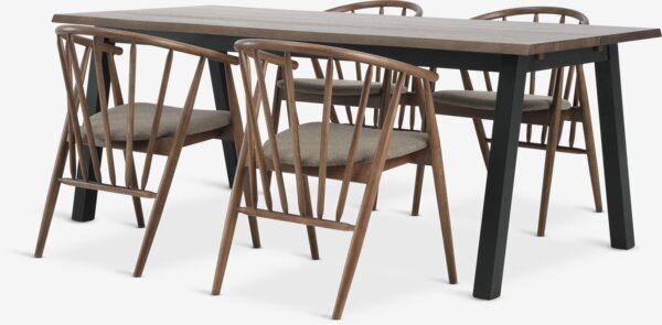 SKOVLUNDE L200 bord mørk eg + 4 LYKSBORG stole mørk eg